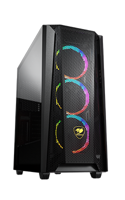 El panel frontal del MX660 Mesh RGB combina el estilo industrial y el potente flujo de aire de COUGAR. No solo garantiza la máxima refrigeración de tu hardware esencial, sino que también te ayuda a crear una configuración impresionante.