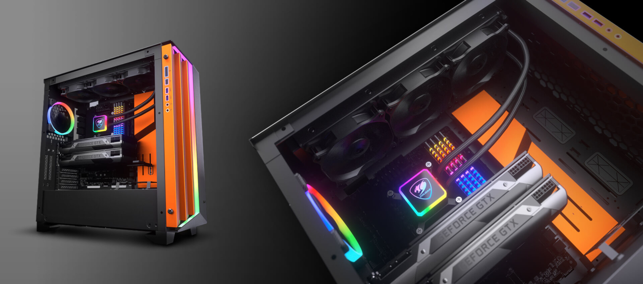 El COUGAR Aqua es una solución de refrigeración líquida AIO que combina rendimiento térmico con estética iluminada. Gracias a sus ventiladores Vortex, bomba rápida a 3200 RPM y la posibilidad de controlar más de 100 efectos RGB vía control remoto, ofrece un balance ideal entre funcionalidad, estilo y versatilidad para sistemas gamer.